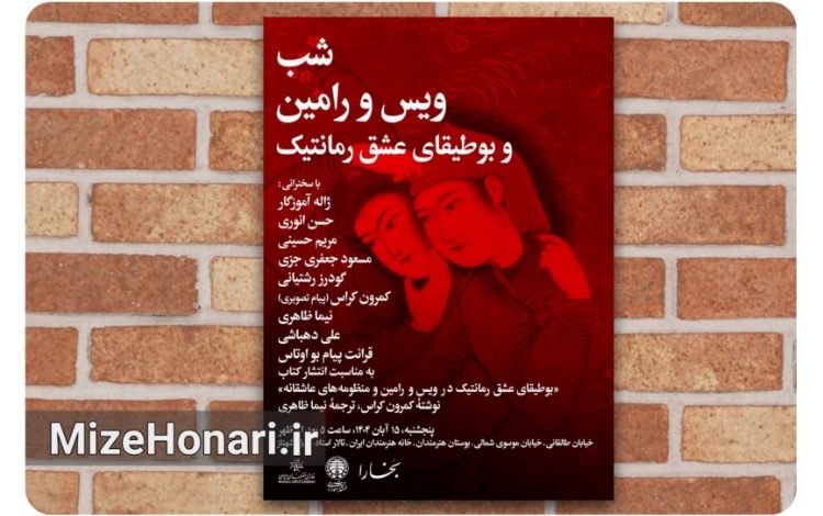 به گزارش میزهنری،نهصد و چهارمین شب از سلسله شب های بخارا با همکاری انتشارات خوارزمی و خانه هنرمندان ایران به رونمایی از کتاب «بوطیقای عشق رمانتیک در ویس و رامین و منظومه های عاشقانه» نوشته کمرون کراس و با ترجمه نیما ظاهری اختصاص یافته است.