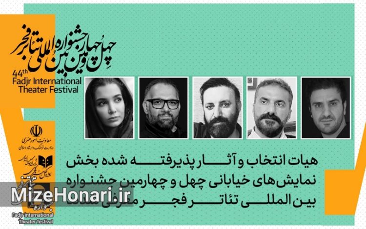 به گزارش میزهنری،به نقل از روابط‌عمومی اداره‌کل هنرهای نمایشی، از سوی دبیرخانه چهل‌وچهارمین جشنواره بین‌المللی تئاتر فجر هیئت انتخاب بخش نمایش‌های خیابانی این رویداد هنری که مدیریت آن را مریم کاظمی بر عهده دارد؛ اعلام و معرفی شدند.